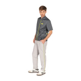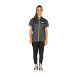 Unisex patterned tunic. Mandarin collar with fluorescent yellow front zip. Short sleeves, 1 spacious pocket. Adjustable waist using hair-resistant Velcro side fastening. Hair-repellent, breathable, durable and very comfortable fabric with permanent anti-static properties