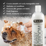 The Wahl Showman Easy Groom Conditioner is a perfectly balanced formula designed to create smooth, silky and easily manageable coats. It’s ideal for romancing or working dogs whose coats can get tangled easily, and works wonders on thick double coats to ensure shed hair slips out while you are blasting. The product features exceptional conditioning compounds that enrich, moisturise and protect hair, revitalising the coat without leaving sticky or waxy residue.